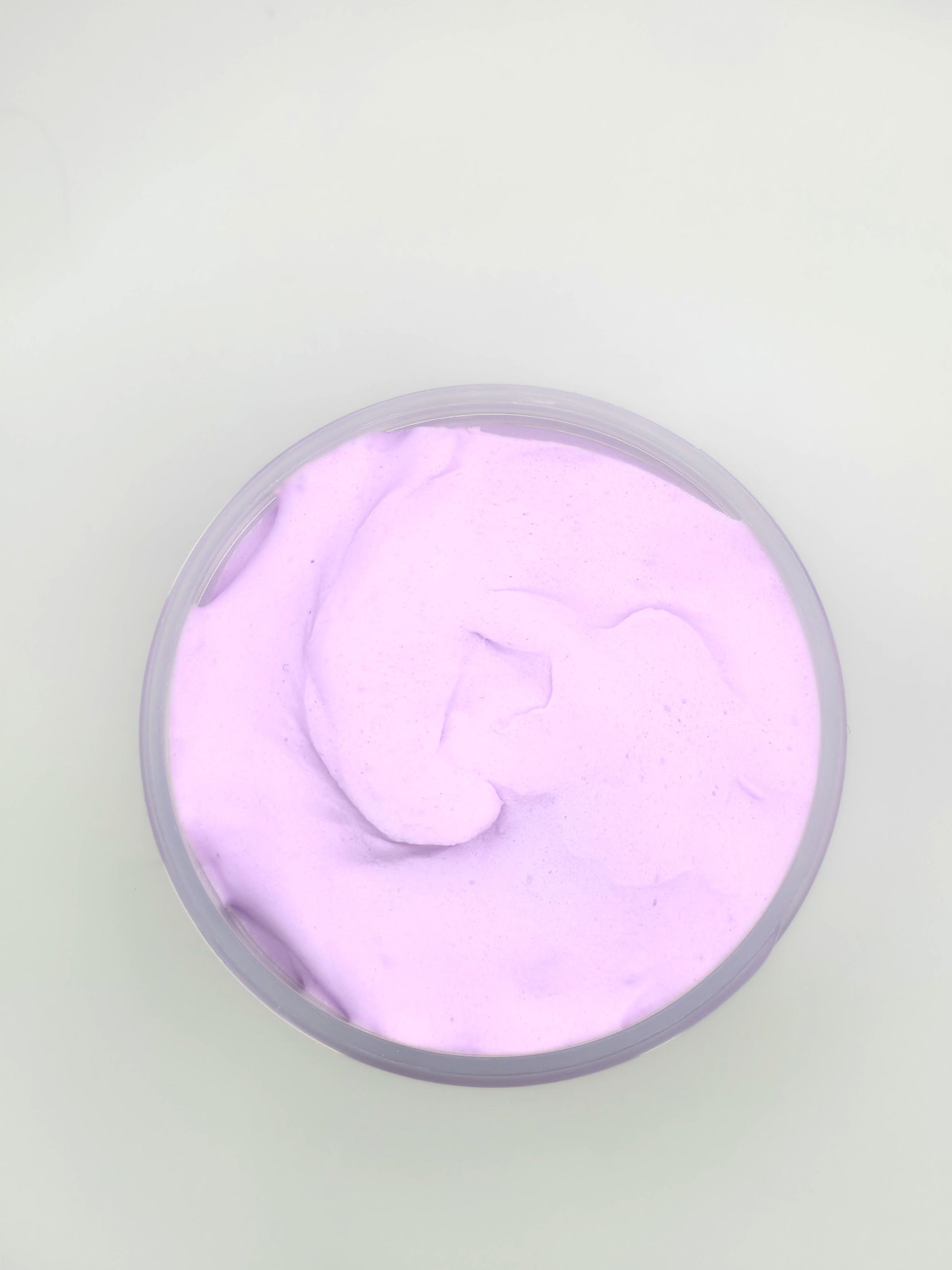 Scented with blueberry, lavender and chamomile, this pastel lavender slime is plush, swirly, and oh-so-comforting. Like a lullaby in slime form, it melts stress away with every stretch and swirl.
